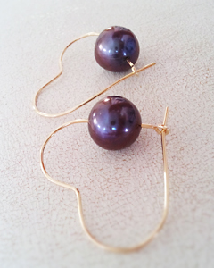 パープルパール・ハートフープピアス