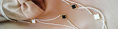 4花弁&ベビーパールのロングネックレス