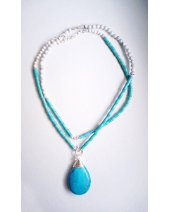 パワーストーンの代表格として永年愛され続けるターコイズを、オトナの女性がエレガントに着けられるよう絶妙な石のバランスでデザイン♪純度99.9%の純銀線を贅沢に幾重にも巻きつけた存在感のある大ぶりのドロップターコイズは、セミロングの長さで1連、胸元近くで2連、とアレンジ着けが楽しめる3WAYです♪