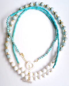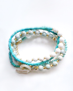 ターコイズをとことん愉しみたい方には、アレンジ無限大のメビウスネックレスをおすすめ♪心に浮かぶままにアレンジしてみれば、軽く10WAYを超えて11WAY!結んで。巻いて。ツイストさせて…。まだまだアレンジ方法は無限大♪ぜひ試して頂きたい5連ブレスレットは、圧巻の一言♪