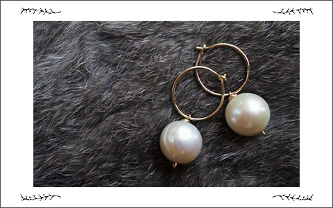 大粒パールのフープピアス
