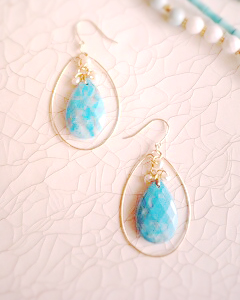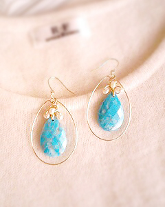 ![]() ドロップカットターコイズフックピアス カッティングされたドロップ型のターコイズがフェイスラインのそばでキラキラと輝き、ぱっと華やかさをプラスしてくれます♪ターコイズに似合う服の色は幅広く、×黒=シック・×白=爽やか・×グレー=知的・×ピンク=キュート・×ブラウン=凛々しく♪ ターコイズを取り巻くK14GFのフープが独立して揺れてストーンメッセージの“成功”のオーラを放ちます♪ 6,400円(税込) ■素材■ ハウライトトルコ石・淡水パール・K14GF / サイズ:(ストーンサイズ)2.8cm×1.8cm (ピアス最大値)約6cm×3cm ※天然真珠の為、サイズ・形状・カラーにバラつきがあります。ご了承下さい。 * ウィンドウを閉じる * |